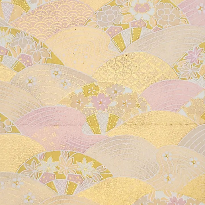 Yuzenshi papers are beautiful and versatile, made in small studios throughout Japan. The base is a lovely white Japanese washi, and the image is screen printed for each color to create the image. Some inks have mica in them to provide a more rich color. These papers are great for crafting projects-the paper is easy to cut and goes on with glue easily. They can also be used in home projects. These papers can also be folded for origami, used in collage, and other art projects. Approximately 19"x25"- Photo is a 4" x 4" section of the paper